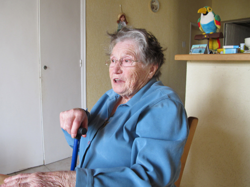 -Jeannette- On a travaillé la terre, tu sais moi, la terre, c’est mon père, voilà. Et y’en a qui se font brûler, y’en a qui… Je leur dis à tous, mettez-moi DANS la terre, sans rien, ça m’est égal, mais moi c’est la terre qui m’a aidé à vivre et à élever mes enfants, pour moi la terre c’est sacré. Voilà c’est bête ce que je dis mais j’ai foi en la terre. J’avais mon jardin. Aujourd’hui on achète les légumes, on va chez le marchand, moi j’achète même plus les légumes, j’achète des petites boîtes toutes faites, y’a rien à faire, je peux plus. J’avais 20 ans, main’nant j’en ai 83. Alors j’en ai plus envie, j’en ai assez fait, je ne veux plus. Alors j’ai mes petits pois, dans les petites boîtes individuelles, là c’est mignon, je connaissais pas ça avant mais j’apprécie, je suis pour le progrès, pour que les choses avancent, j’ai toujours été dans cette voie là. Alors moi le progrès ça ne me fait pas peur. |